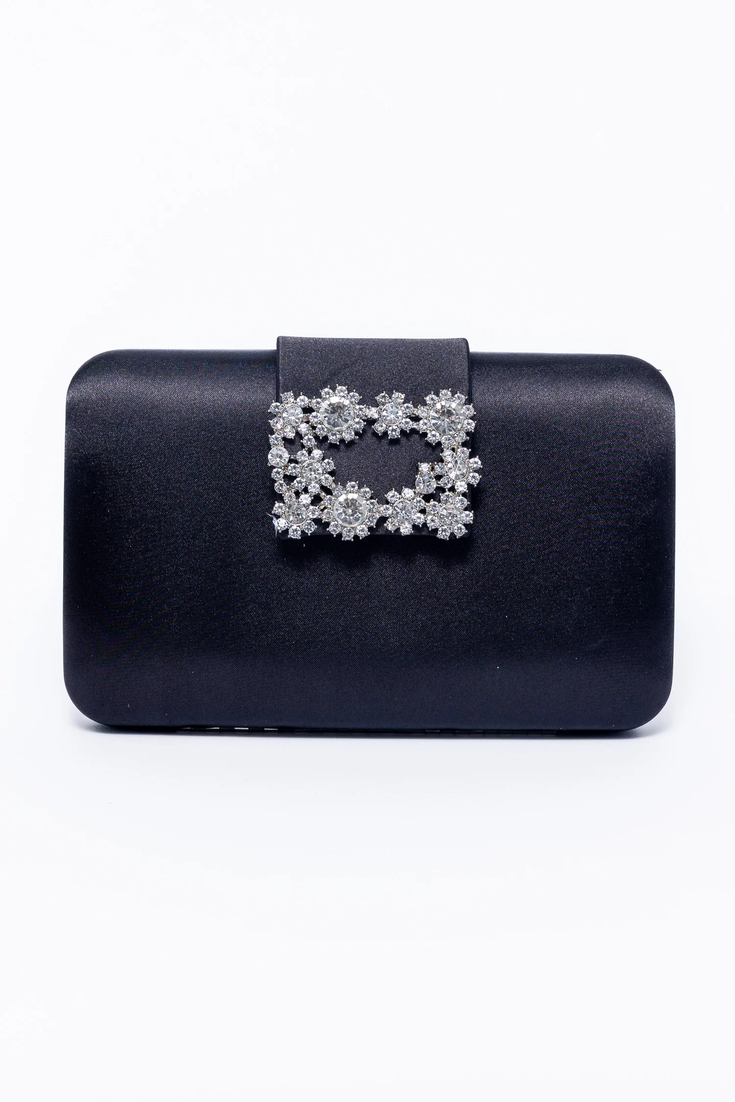 Clutch elegant satinat cu formă dreptunghiulară, ideal pentru evenimente speciale. Se închide cu capsă magnetică și este decorat cu un accesoriu metalic cu pietre strălucitoare, care adaugă un plus de rafinament. Prevăzut cu două lanțuri de lungimi diferite, ce permit purtarea atât pe umăr, cât și în mână.