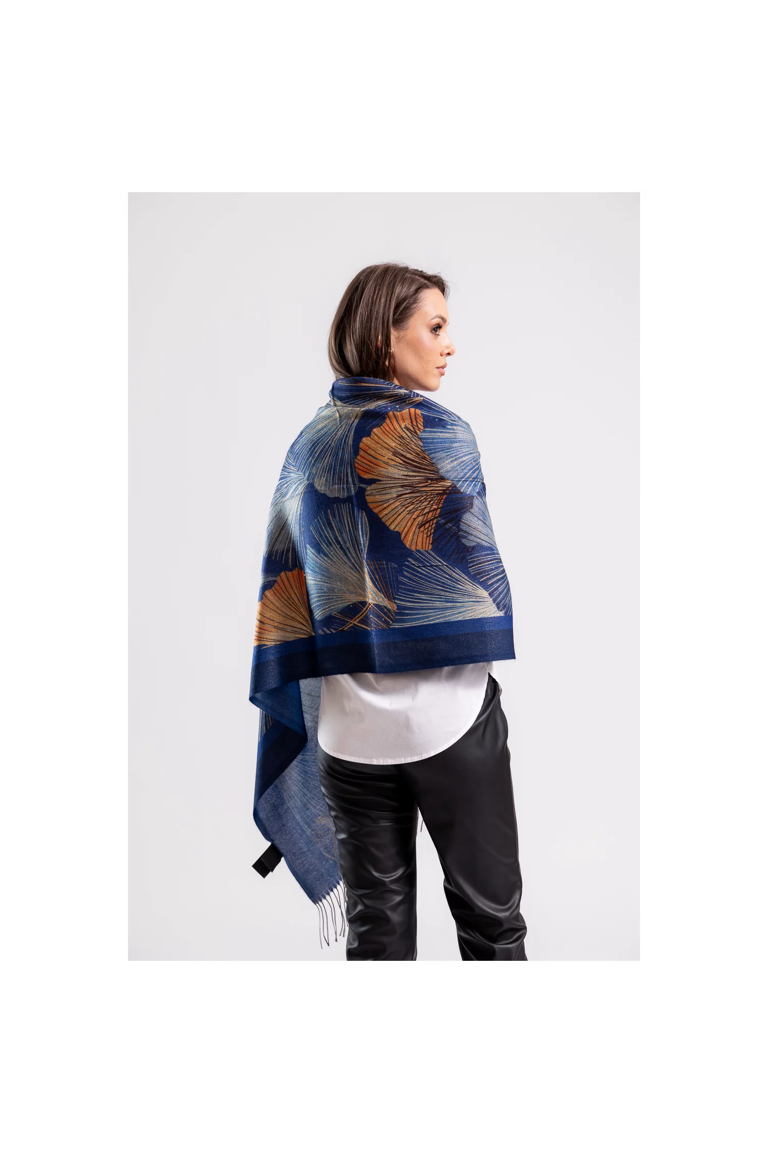 Adaugă un strop de eleganță și natură ținutelor tale cu această eșarfă maxi, decorată cu un imprimeu sofisticat de frunze mari. Firul lucios discret adaugă un efect subtil de strălucire, perfect pentru a evidenția fiecare detaliu al acestei piese, în timp ce franjurile de la margini conferă un aer modern și dinamic. Realizată dintr-un material ușor și plăcut la atingere, eșarfa este ideală pentru a fi purtată în diverse stiluri, fie că o înfășori elegant în jurul gâtului, fie că o porți pe umeri pentru un look mai lejer. Imprimeul de frunze mari aduce o notă de naturalețe și rafinament, în timp ce firul lucios discret adaugă o dimensiune suplimentară de eleganță. Această eșarfă maxi este accesoriul perfect pentru a adăuga un accent de stil și personalitate fiecărei ținute, fiind ideală atât pentru zilele casual, cât și pentru ocazii speciale.