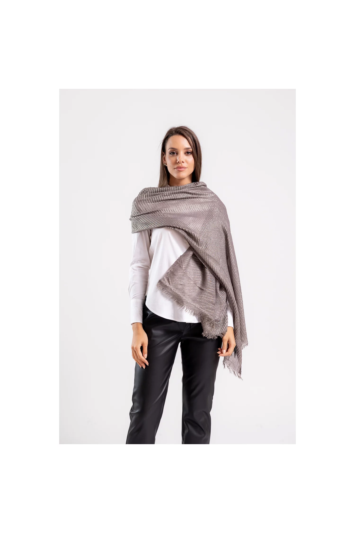 Eșarfă maxi plisată gri cu fir auriu EKG0908