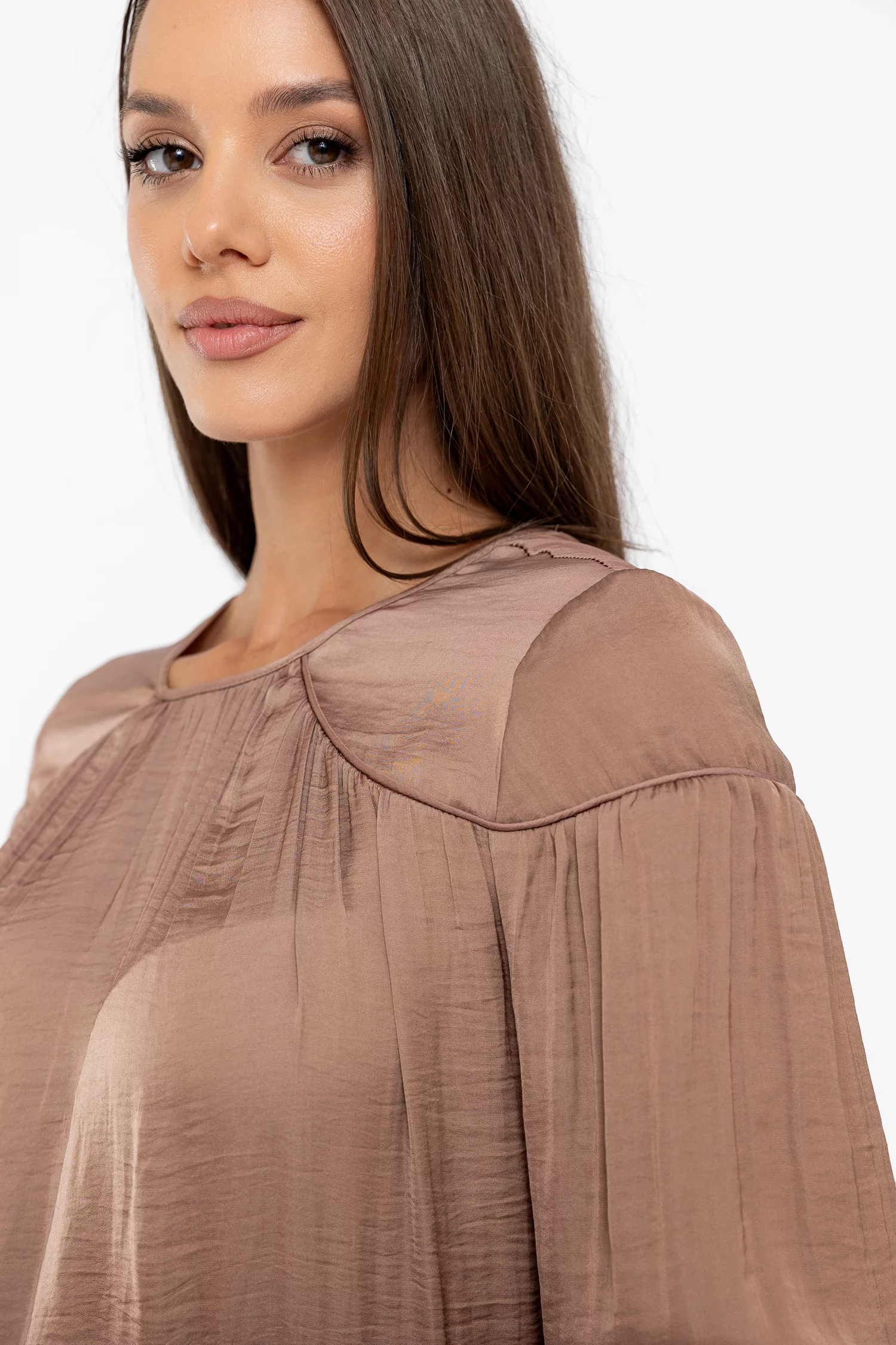Bluză lejeră cu piping mocha B4538