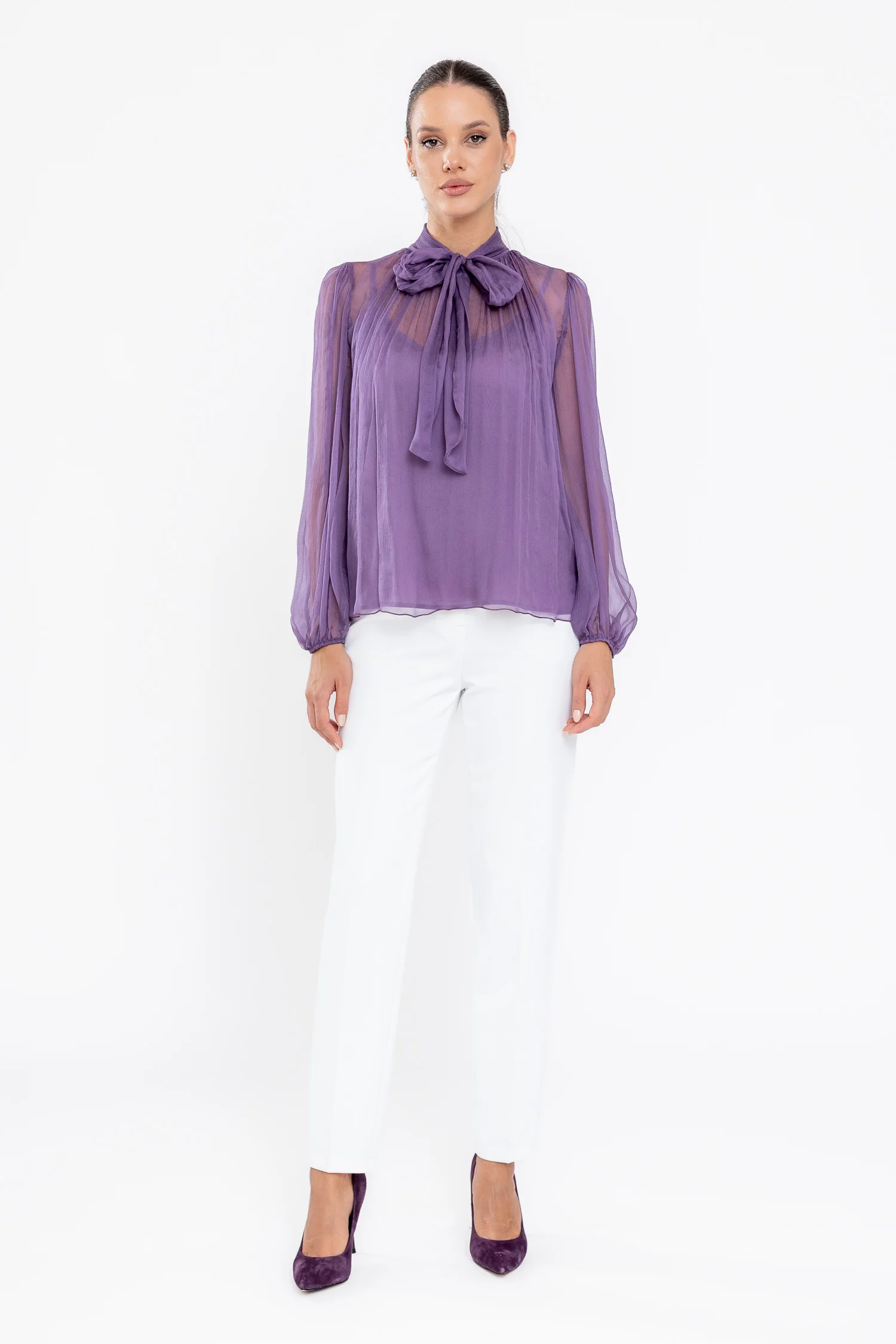 Bluză Caramel elegantă mătase naturală mov B4530