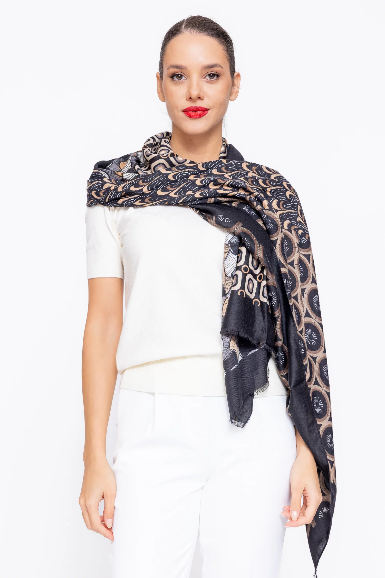 Eșarfă imprimeu geometric neagră EGK1122