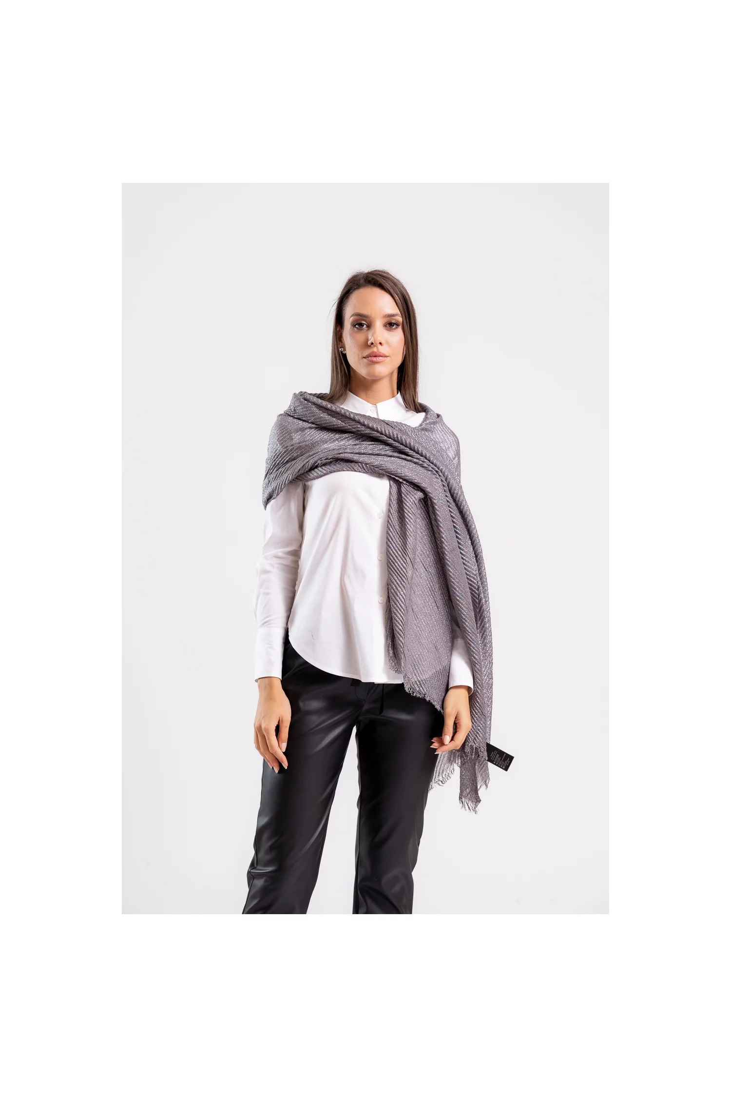 Eșarfă maxi plisată cu fir lucios argintie EKG0908