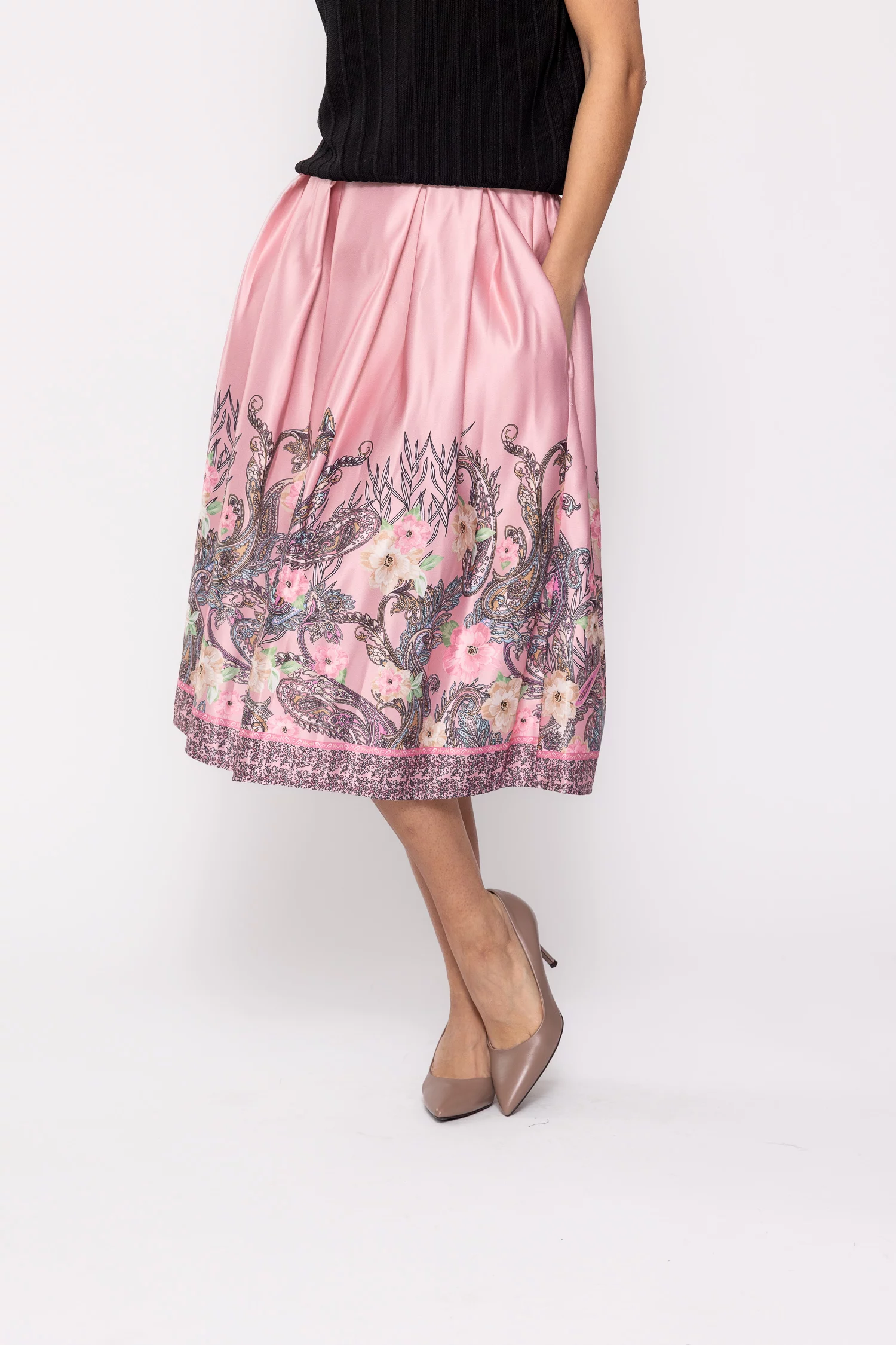 Fustă midi în pliuri roz FVA60201