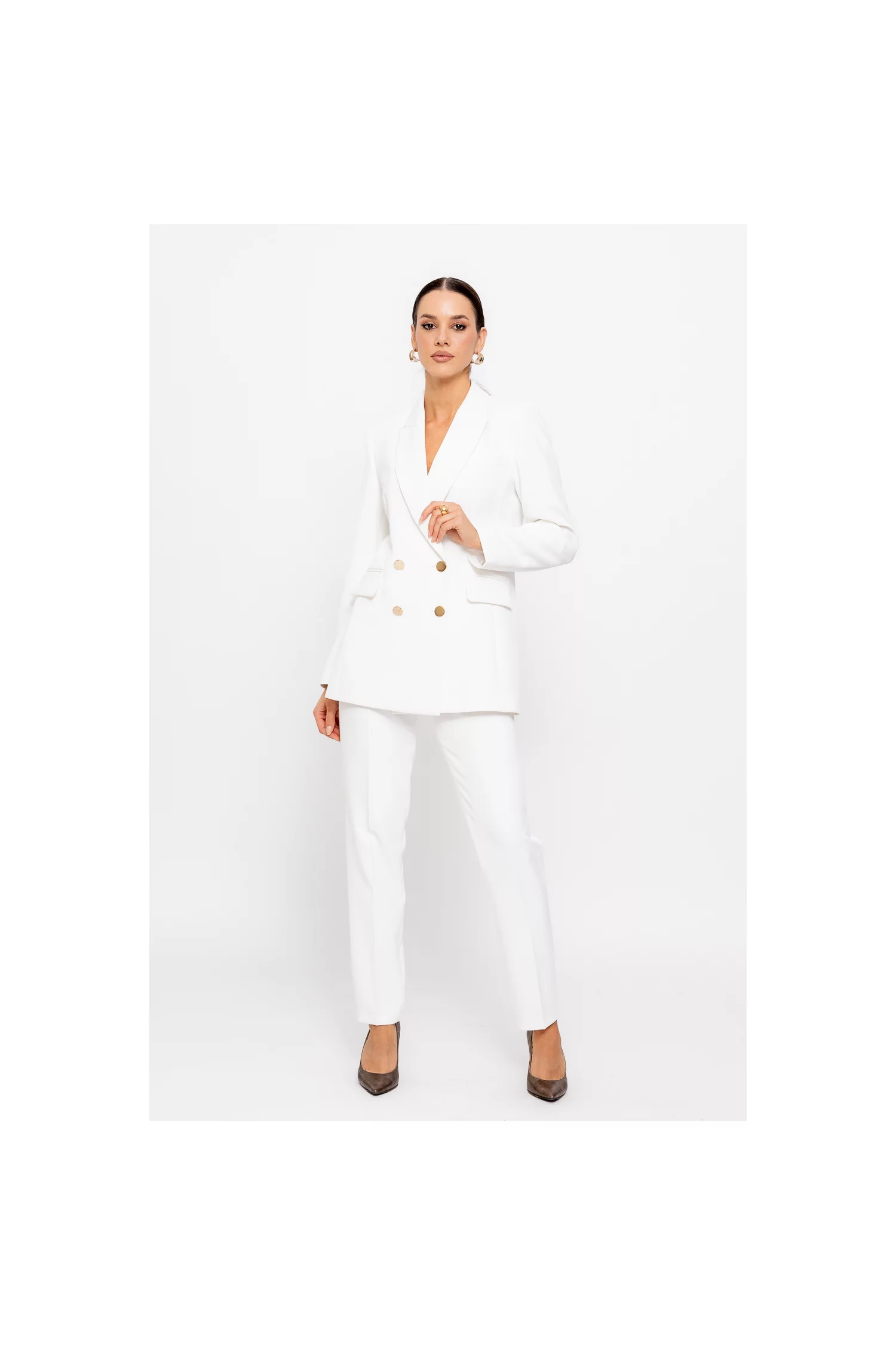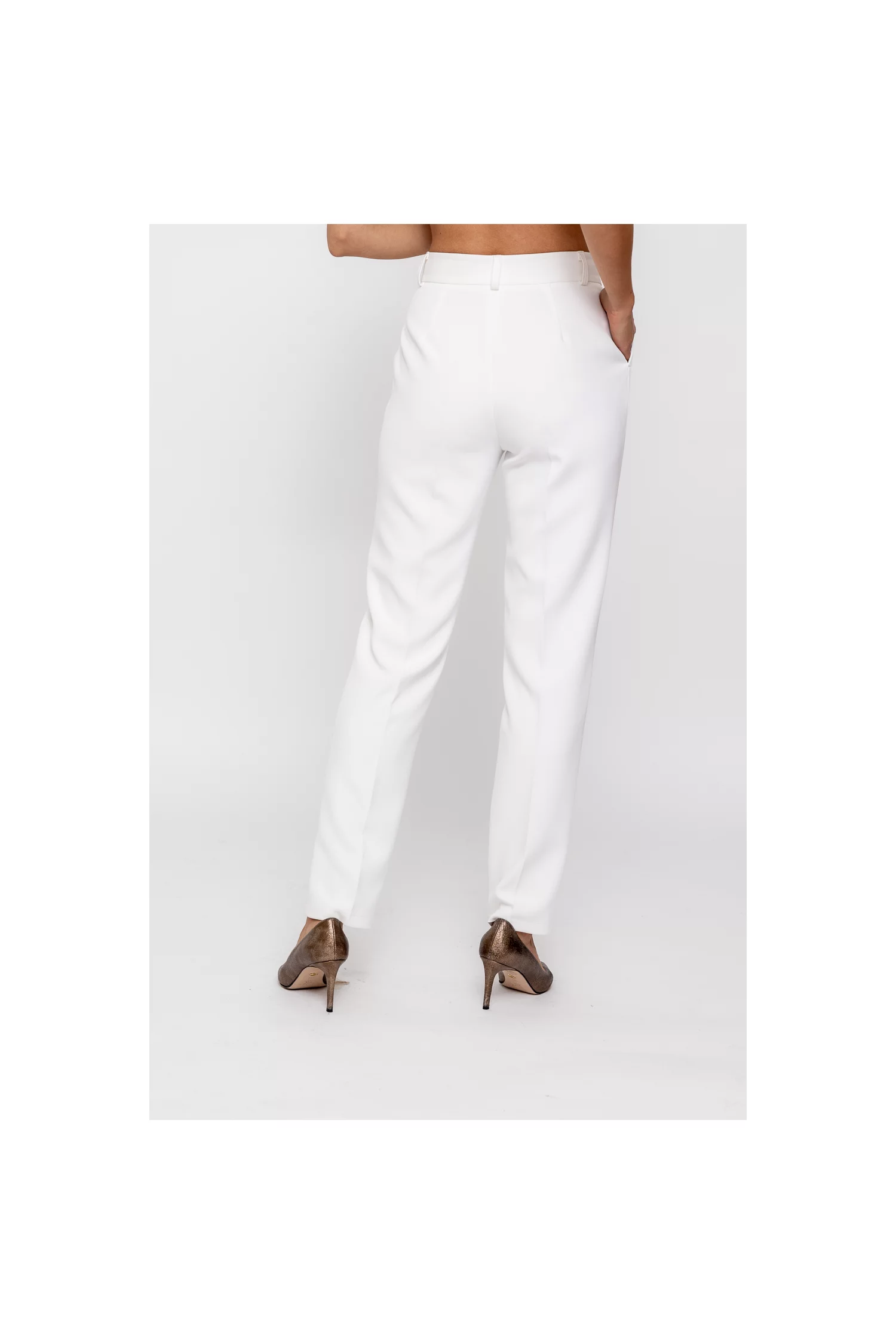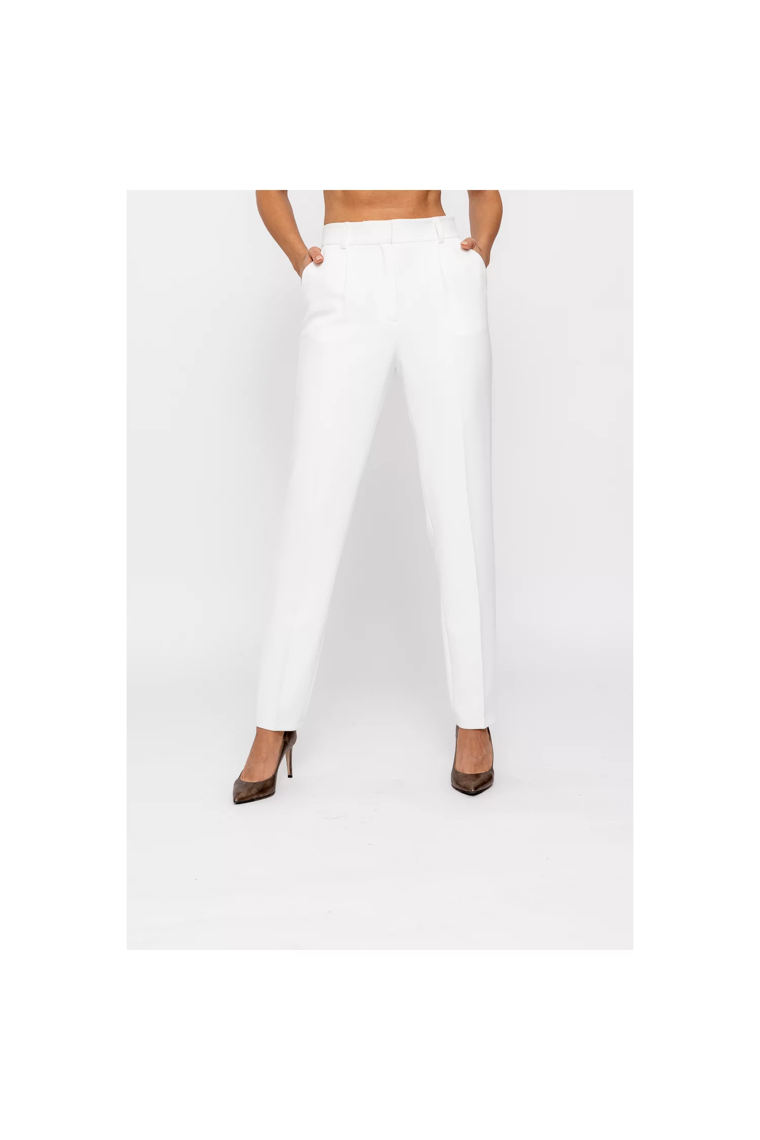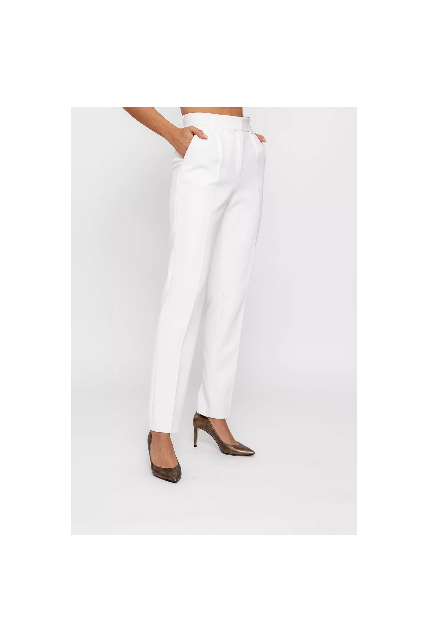 Pantaloni Caramel conic cu un pliu ivory P2512