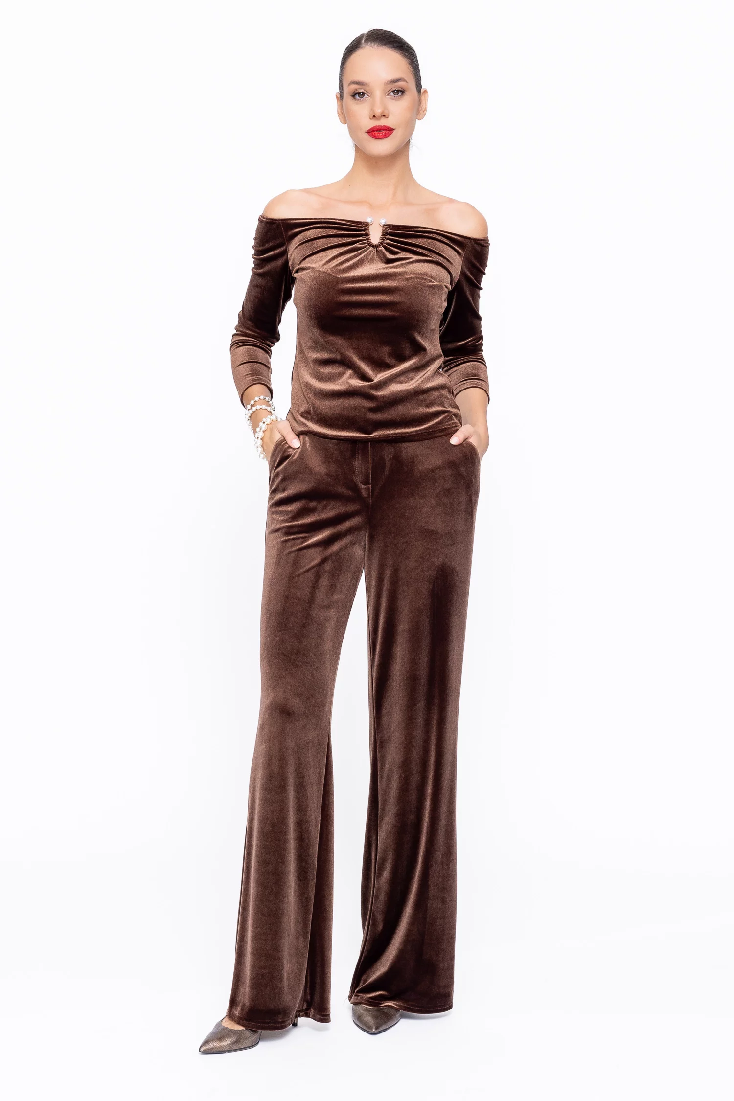 Adaugă o notă de rafinament garderobei tale cu acest pantalon lejer din catifea, ideal pentru ținute sofisticate și confortabile. Croiala evazată oferă fluiditate și alungire siluetei, în timp ce talia înaltă accentuează feminitatea și eleganța. Pantalonul se închide discret cu copci ascunse și fermoar lateral, pentru un aspect impecabil. Buzunarele laterale funcționale adaugă un plus de utilitate și stil acestei piese versatile. Perfect pentru ocazii speciale, ținute office sau ieșiri casual-chic, acest pantalon poate fi asortat cu bluze din mătase, topuri elegante sau sacouri. Alege-l pentru un look modern, cu un aer sofisticat!