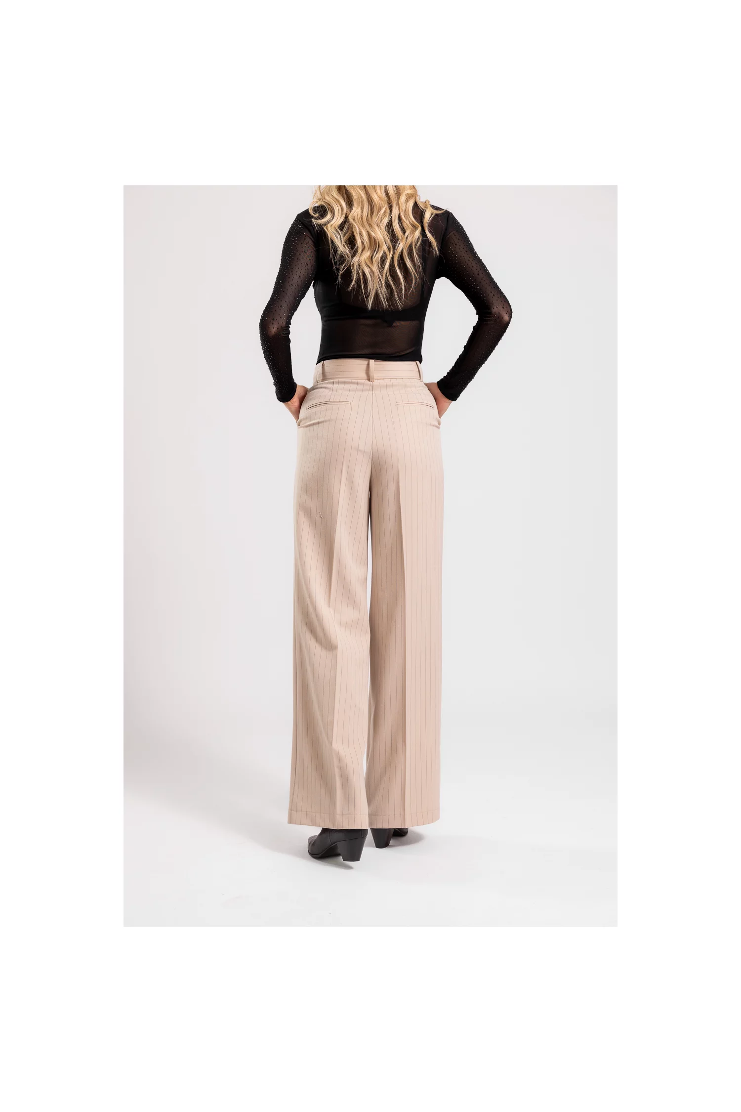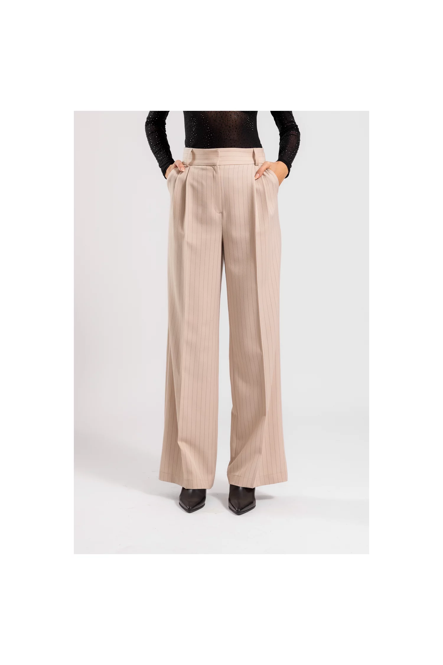 Pantaloni Caramel evazați bej cu dungi P2417