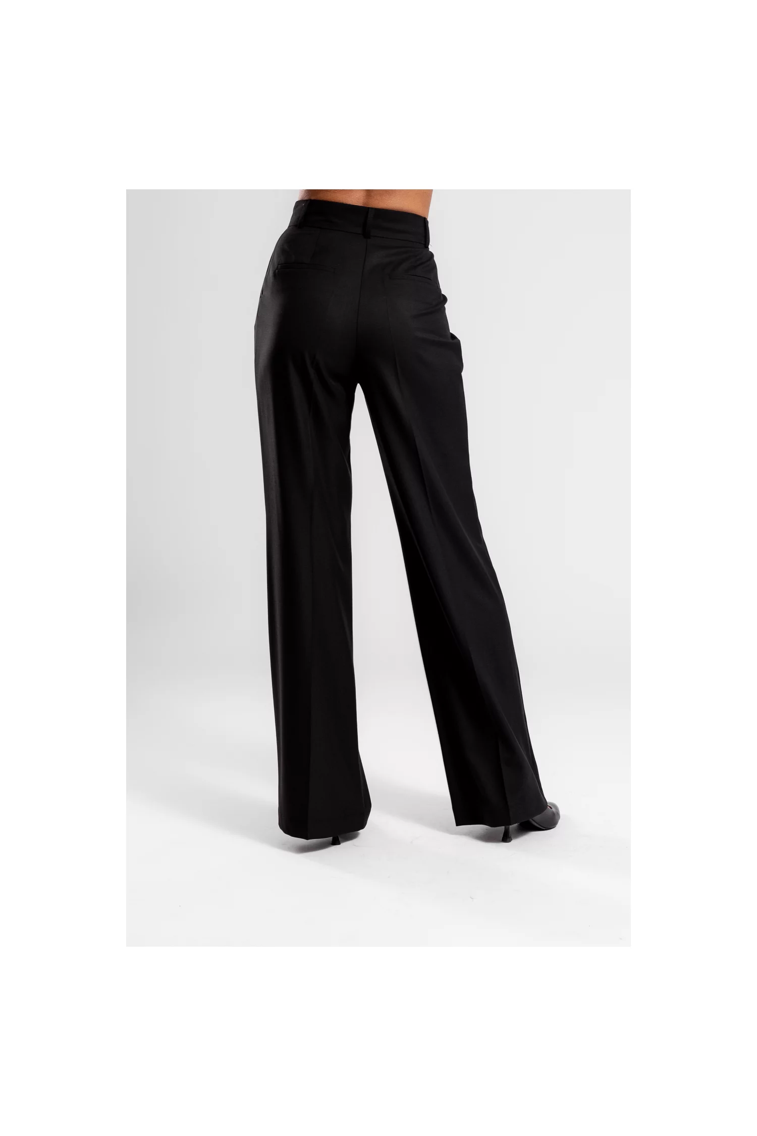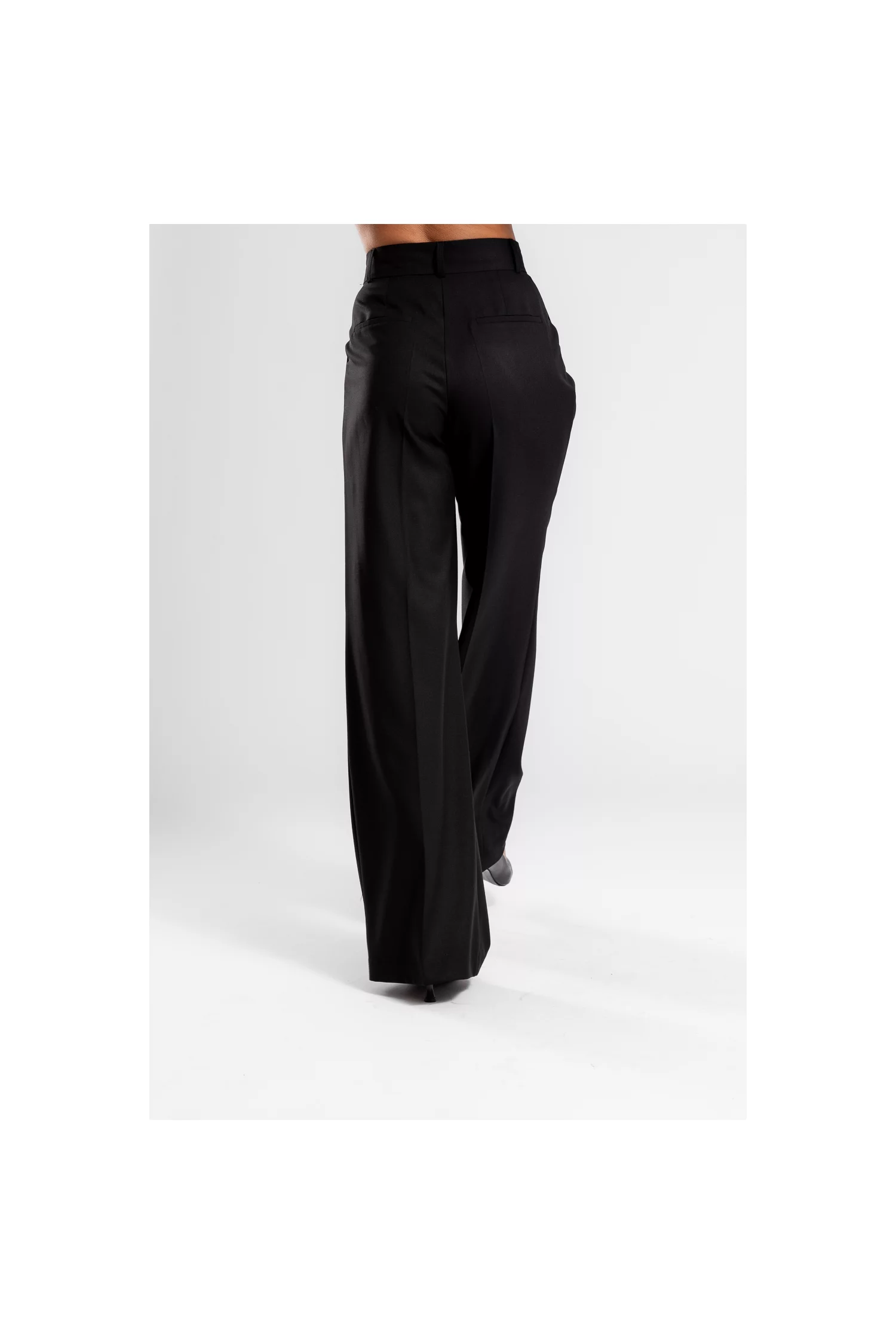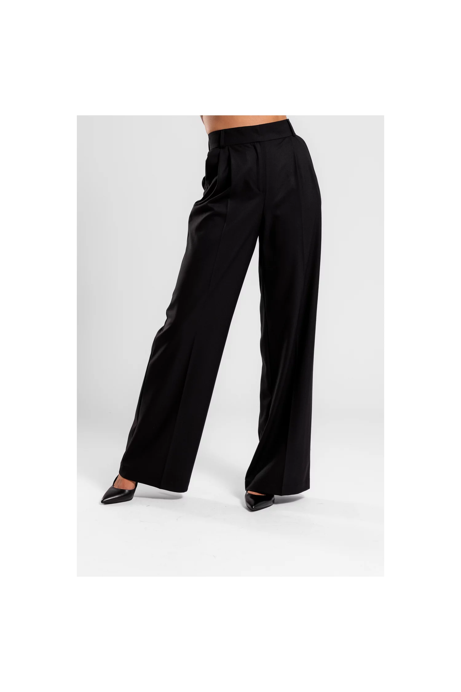 Pantalon lejer cu talie înaltă, confecționat din stofă ce oferă un aspect clasic și rafinat. Are pliuri decorative în față, buzunare laterale funcționale și buzunare cu refileți la spate, completate de dunga călcată pe toată lungimea piciorului pentru un plus de eleganță. Ideal pentru ținute office sau smart-casual.