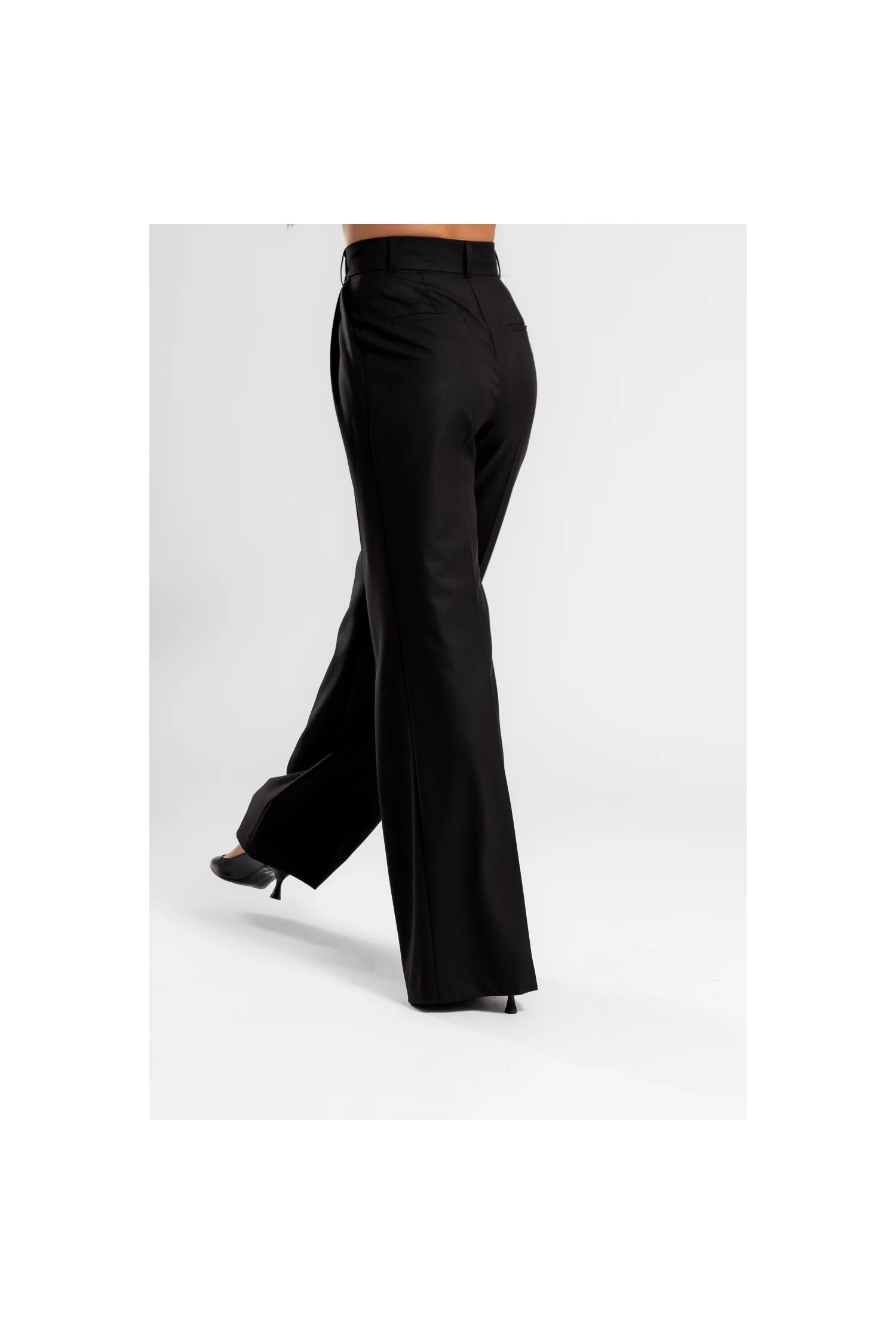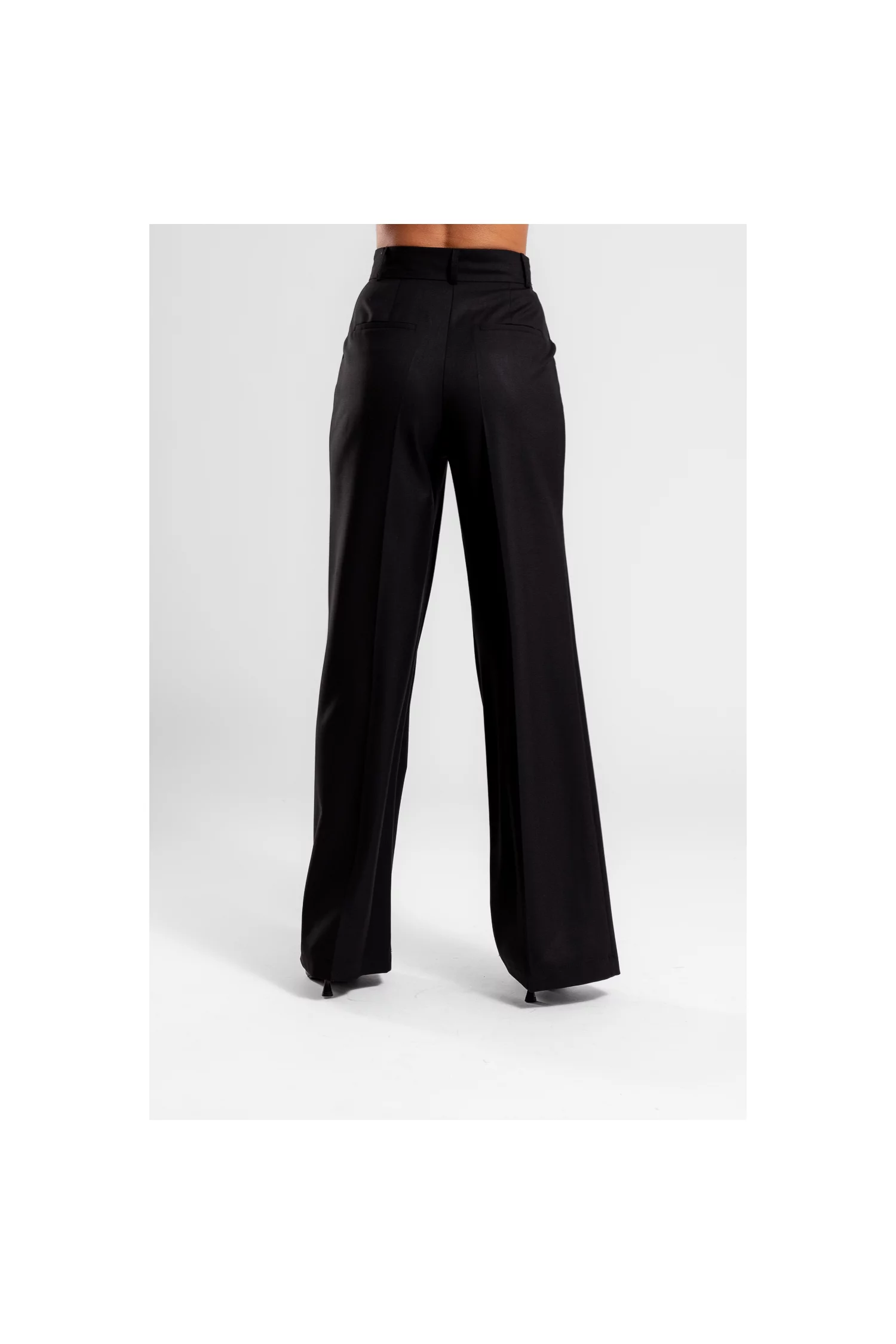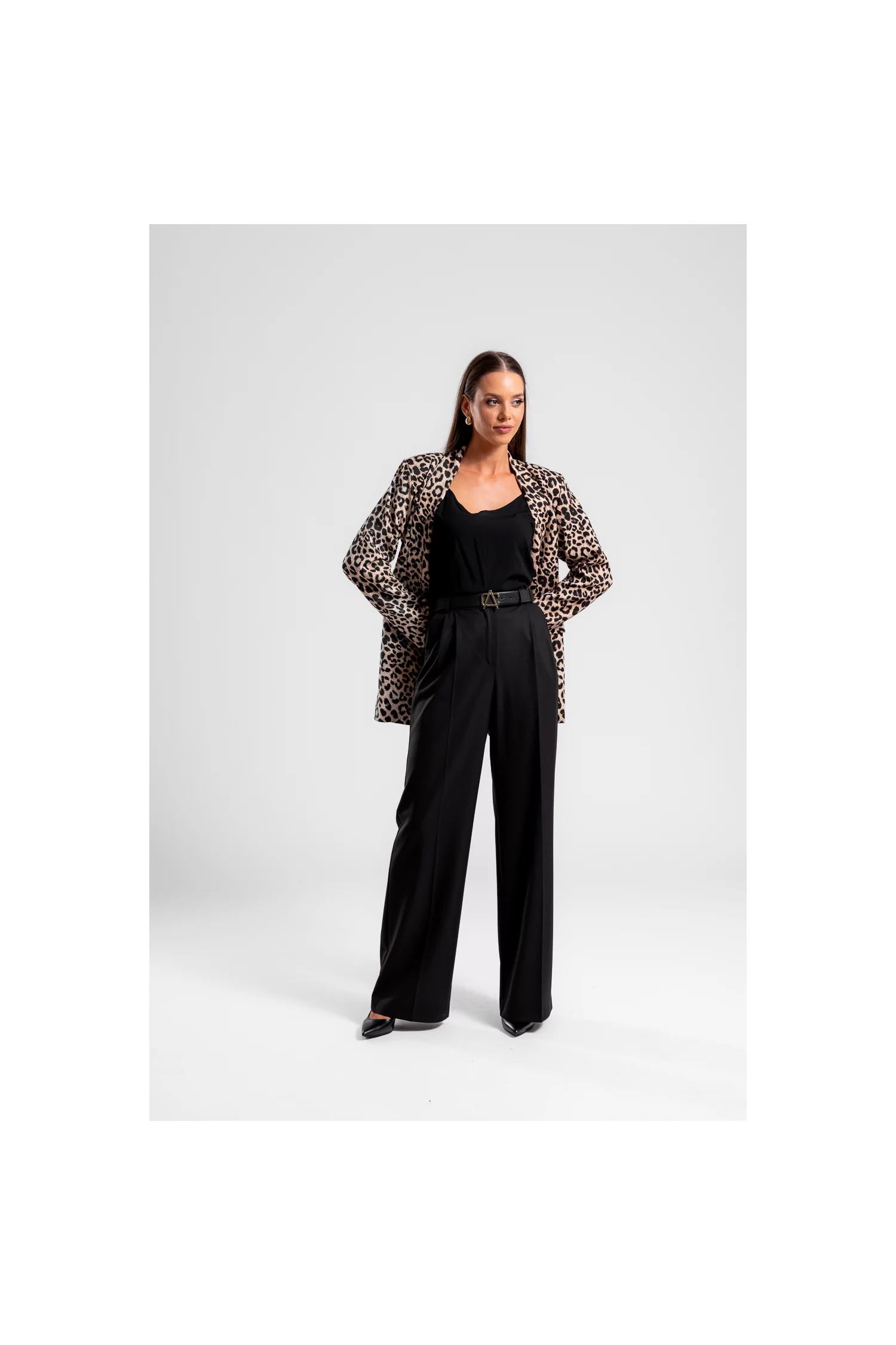 Pantalon lejer cu talie înaltă, confecționat din stofă ce oferă un aspect clasic și rafinat. Are pliuri decorative în față, buzunare laterale funcționale și buzunare cu refileți la spate, completate de dunga călcată pe toată lungimea piciorului pentru un plus de eleganță. Ideal pentru ținute office sau smart-casual.