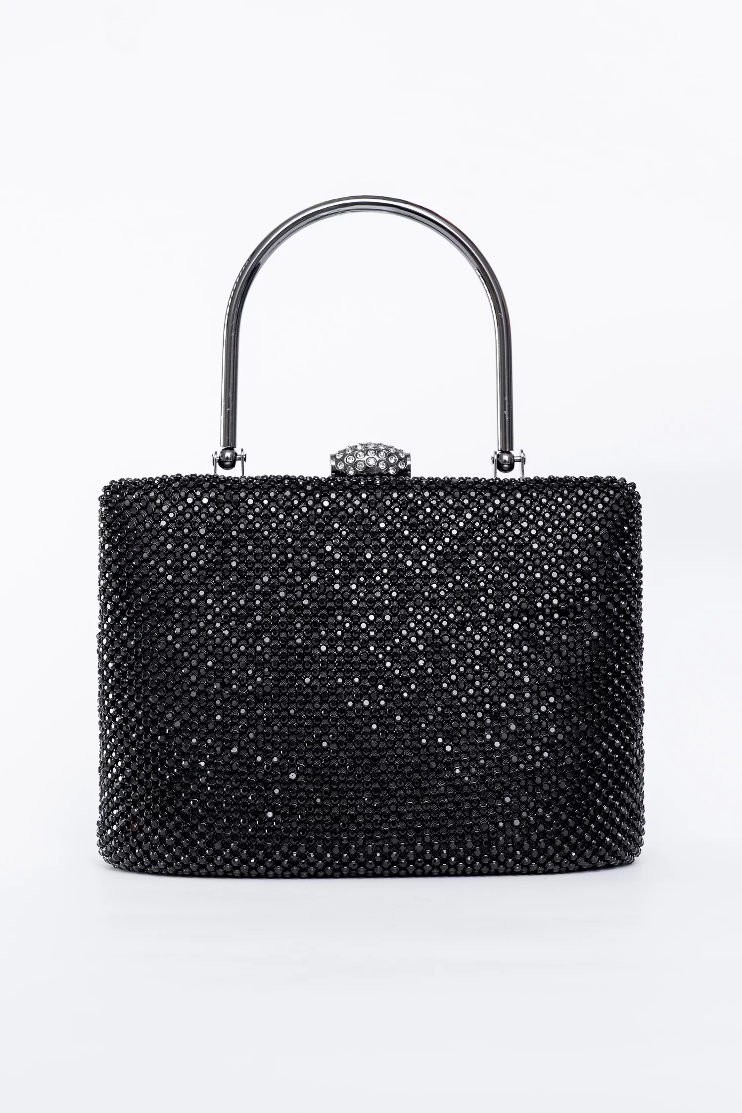 Poșetă de ocazie decorată cu strasuri neagră PAS0909