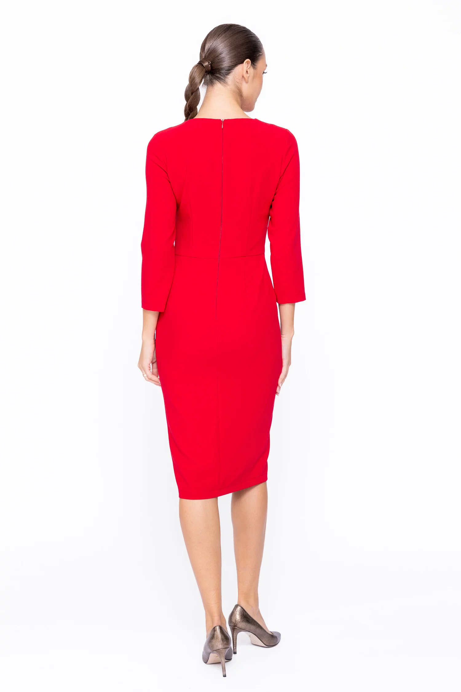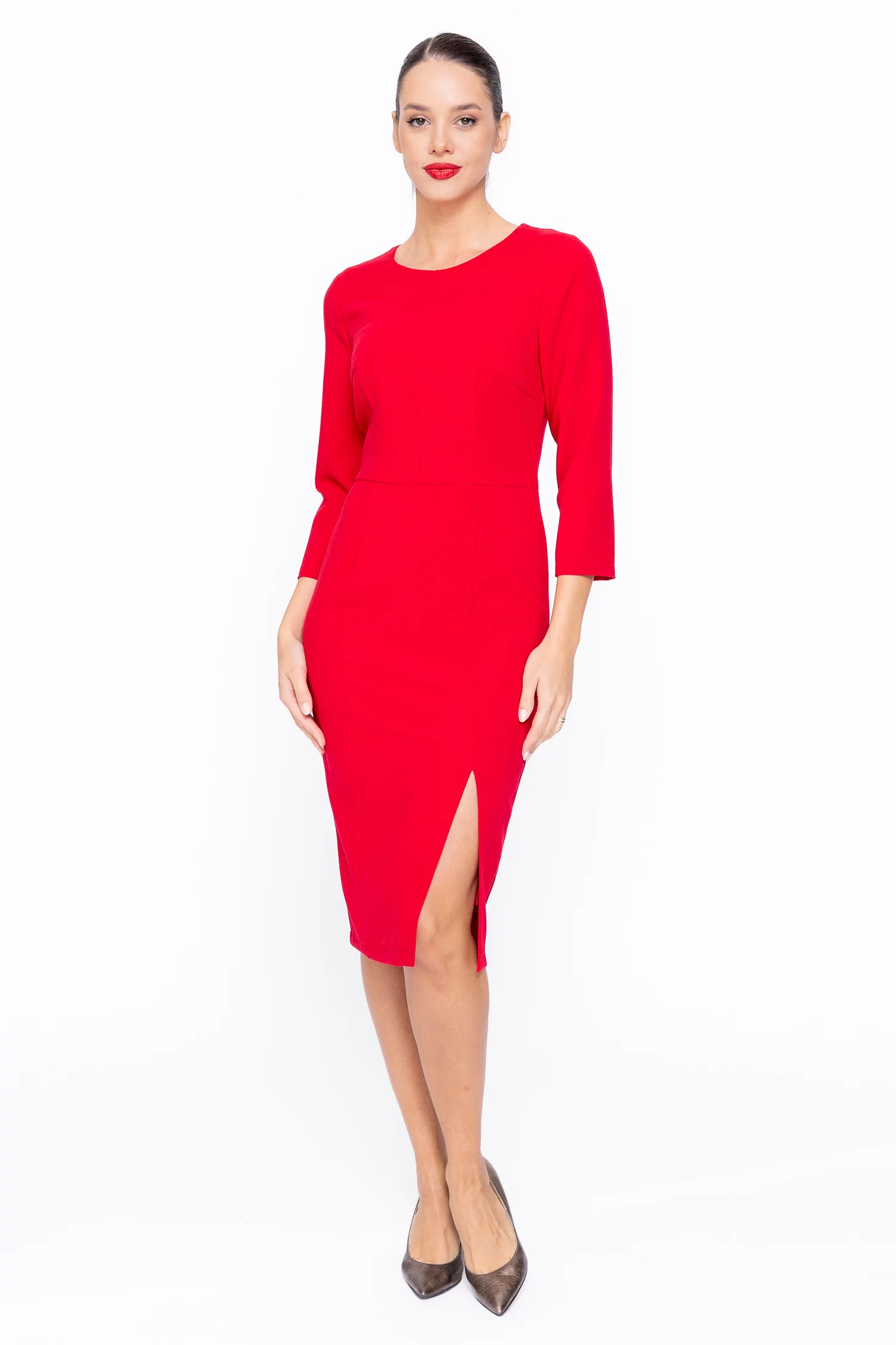 Rochie Caramel conică din stofă cu șliț pe picior roșie R8573