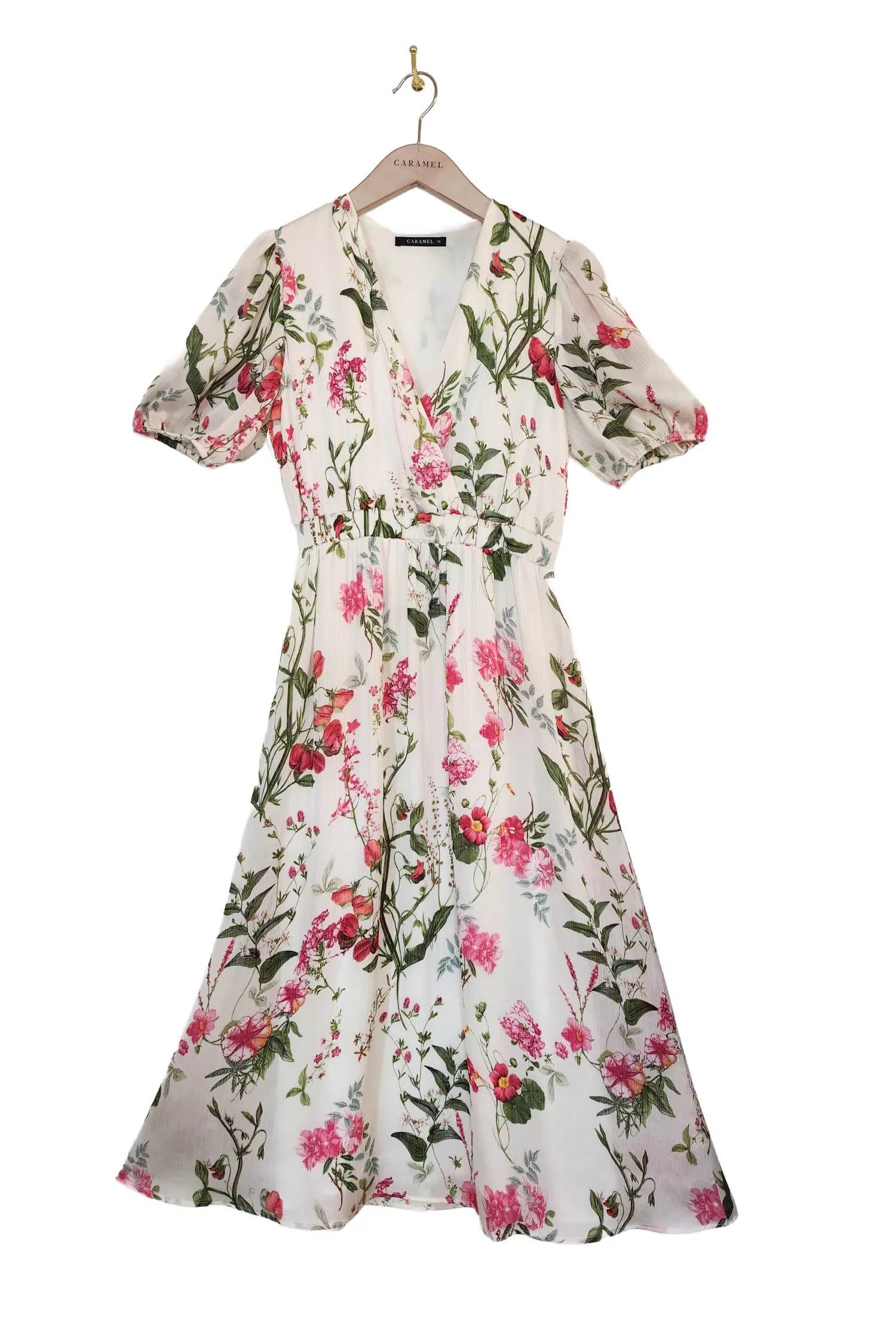 Rochie Caramel midi imprimeu floral ivory R8528