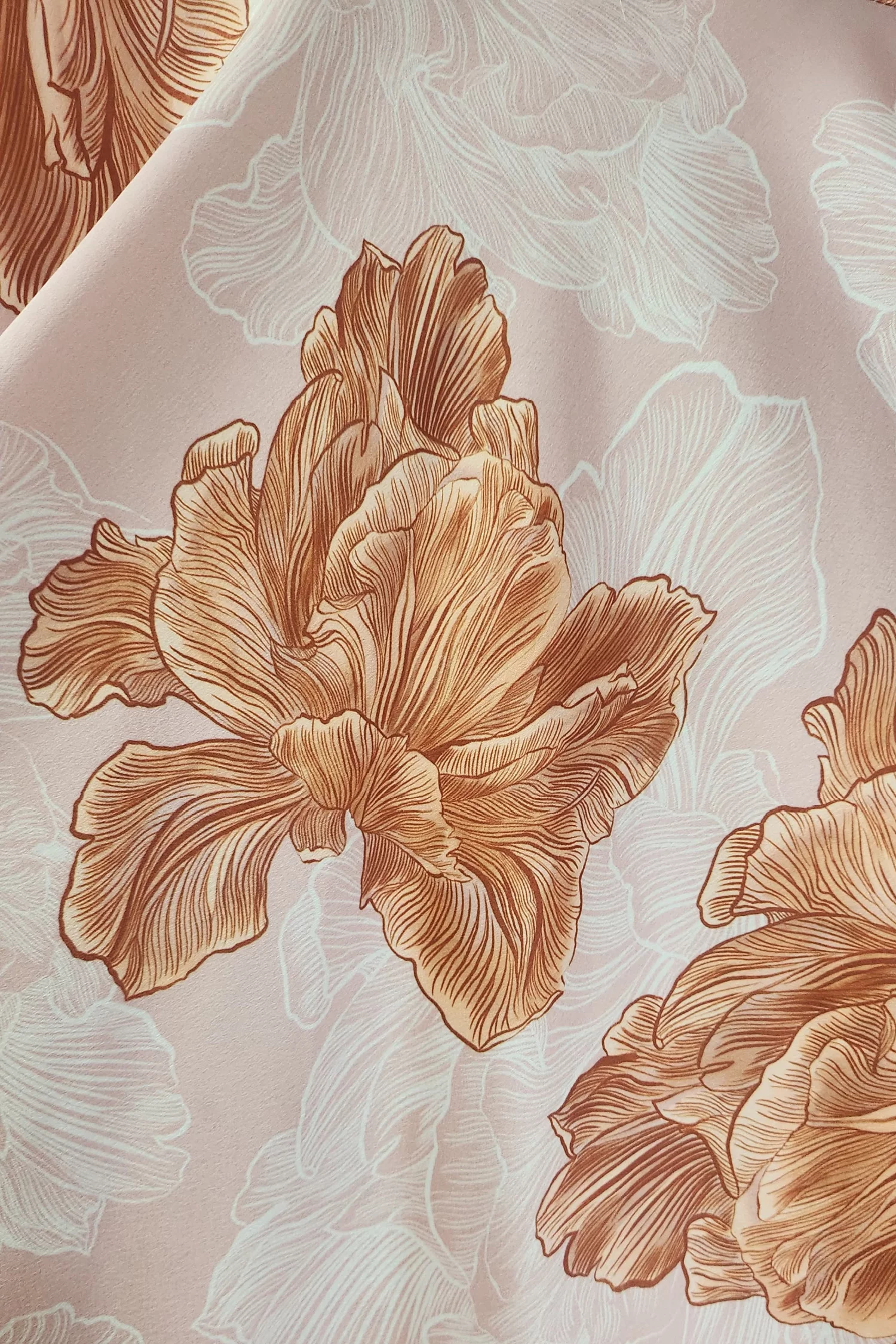 - material satinat cu imprimeu floral mare;